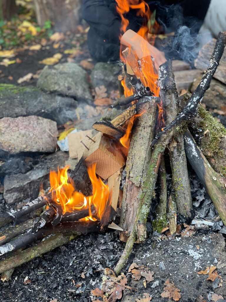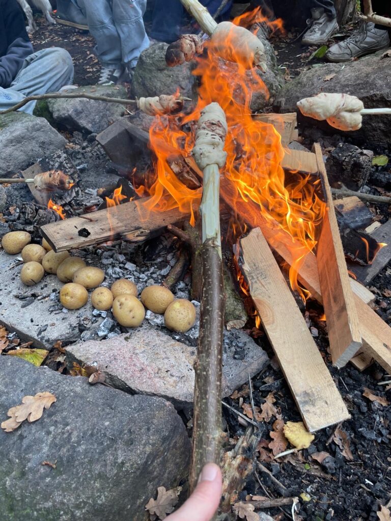 Danach erhielt jede/r Teilnehmer_in eine Wundertüte mit unterschiedlichen Zundervarianten. Ausgestattet mit einem Feuerstarter erkundeten wir die natürlichen Zundervarianten, lernten was die Natur uns zu bieten hat und wie man verantwortungsbewusst mit Feuer umgeht. Am knisternden Lagerfeuer ließen wir den Tag gemütlich mit frisch geröstetem Stockbrot und in der Glut gegarten Kartoffeln ausklingen.
